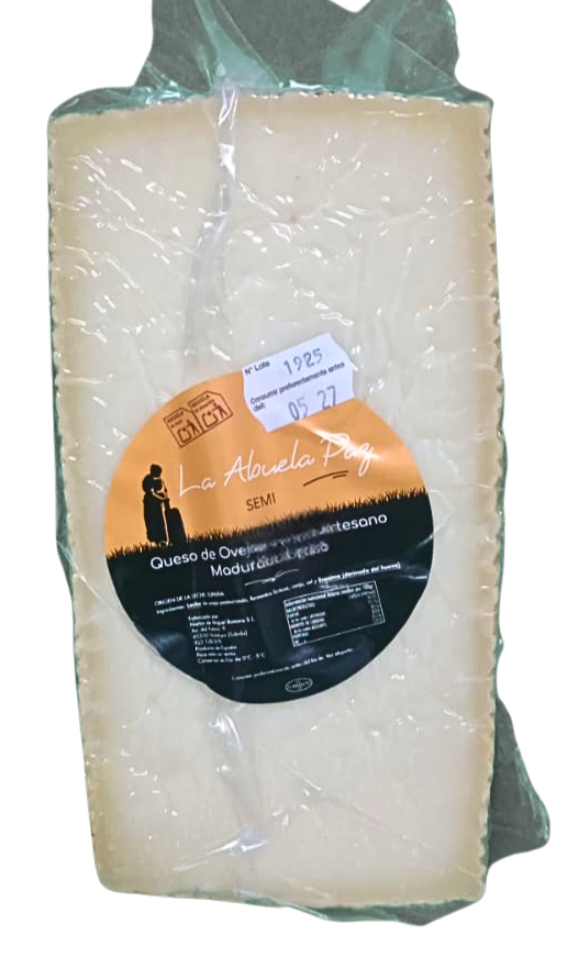 El Queso de Oveja Semicurado Madurado “La Abuela Paz” es una joya de la quesería artesanal que destaca por su sabor intenso y su textura firme. Elaborado con leche pasteurizada de oveja, este queso se somete a una curación de entre 6 y 8 meses, lo que le confiere un carácter único. Su corteza natural y su pasta compacta hacen de él una delicia para los paladares más exigentes.