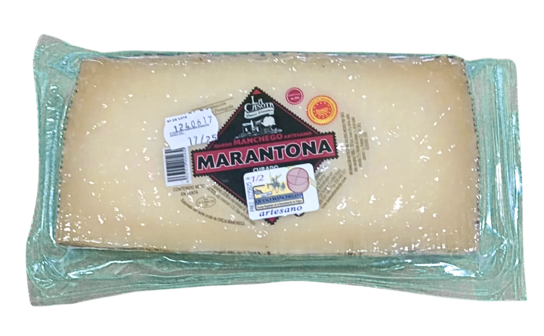 El Queso Marantona D.O.P. Manchego Curado es un producto artesanal que destaca por su elaboración con leche cruda de oveja manchega, una raza autóctona de la región de La Mancha. Su proceso de maduración, que oscila entre los 8 y 12 meses, permite el desarrollo de una textura firme y compacta, característica de los quesos de pasta prensada. La corteza, de color amarillo pálido a verdoso negruzco, y la pasta, de color variable desde blanco hasta marfil amarillento, son indicativos de su proceso de curación natural. En boca, ofrece un sabor ligeramente ácido que se intensifica con la maduración, acompañado de una sensación mantecosa y la presencia de ojos pequeños y desigualmente repartidos, típicos de este tipo de queso.