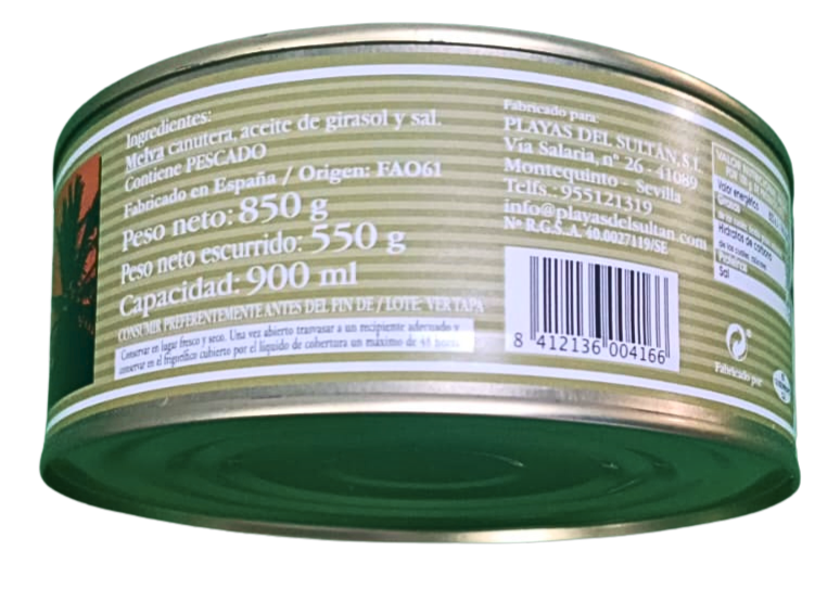 El Filete de Melva Canutera en Aceite de Girasol Playas del Sur es una conserva gourmet que destaca por su sabor delicado y su textura jugosa. Proveniente de melvas canuteras seleccionadas, esta conserva se caracteriza por su carne compacta y laminada, que la convierte en una de las partes más apreciadas del pescado.