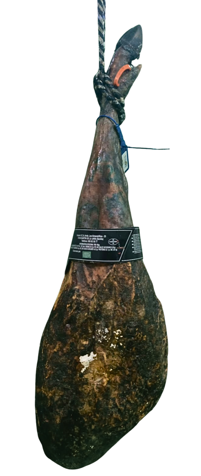 Criado en libertad y alimentado con una dieta natural, este jamón presenta una infiltración de grasa que le otorga una textura jugosa y un sabor profundo. Su curación prolongada en secaderos naturales permite el desarrollo de aromas complejos y una madurez equilibrada.
